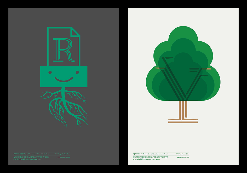 英国文具零售商 Ryman 推出的环保字体,因为采用了中间镂空的设计,所以比标准字体平均少用 33% 的墨水。兼具阅读友好性、设计美观度和环保可持续的特征,Ryman字体在国内的印刷品上虽然尚未得到充分使用,但却是一种具有启发性的字体。