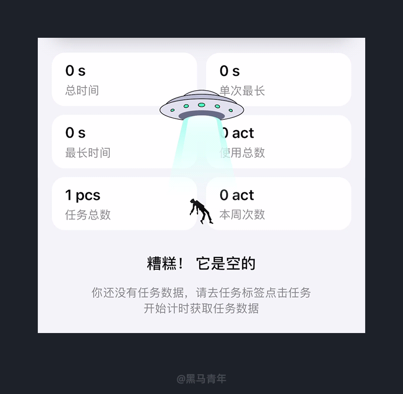 空状态代表无数据状态设计,通常形式有纯文案提示、图形加文案提示、情感化插画融入、IP 形象结合、动效表达形式等。在体验的众多案例中,动效形式的表达相对较少,不过感官度也是不错的。