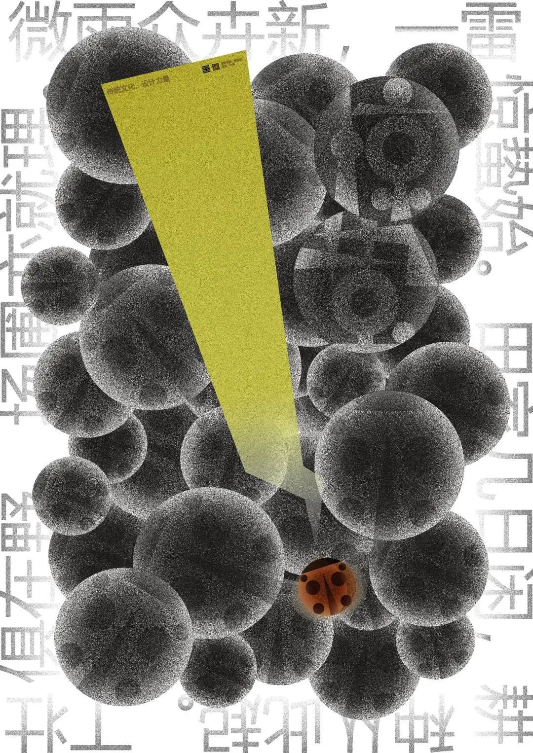 图4:灰色的瓢虫给人一种压抑的感觉,加上亮色的闪电和瓢虫,寓意雷响虫惊