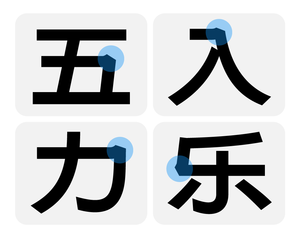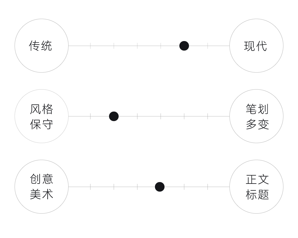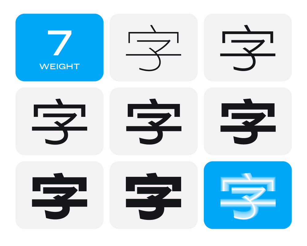 “明显差异化”是产品的核心市场竞争力之一,字形骨架、笔划修饰、字面比例都是制造“差异化”的手段。