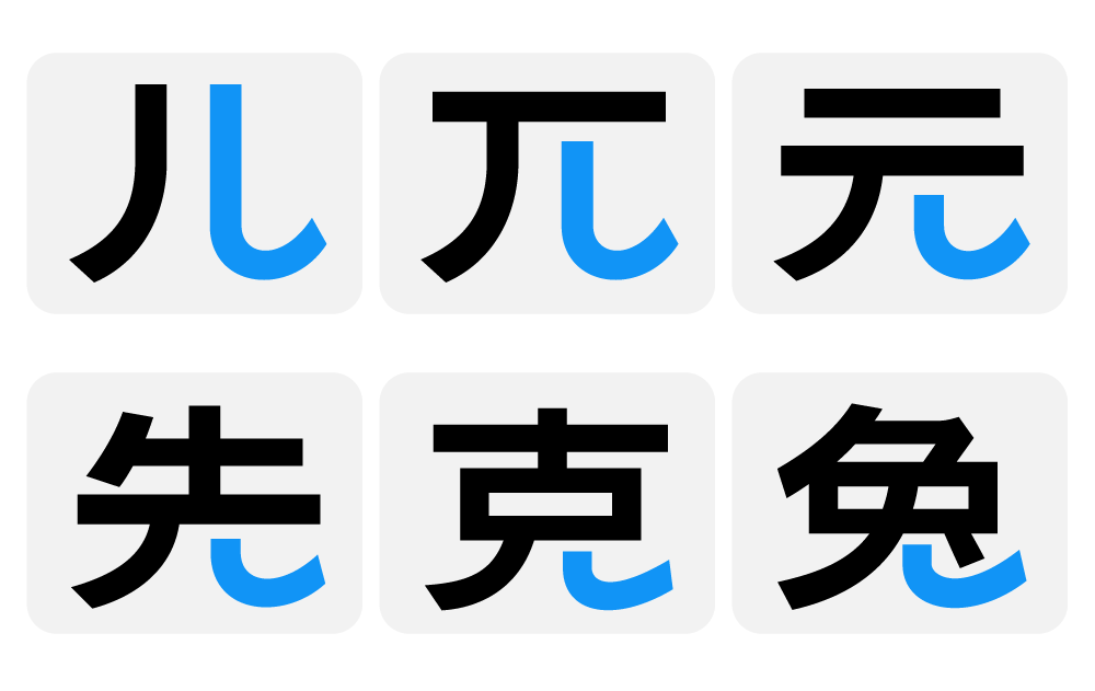 “儿”……“兔”,相同宽度不同高度的处理表现