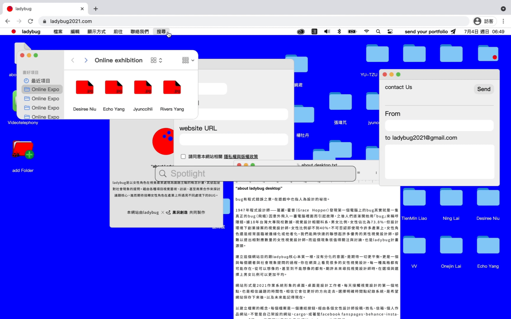 上年7月推出「2021 Ladybug online desktop」——以进入「电脑桌面」为设计概念,设立中国台湾首个女性视觉设计串连网站。
