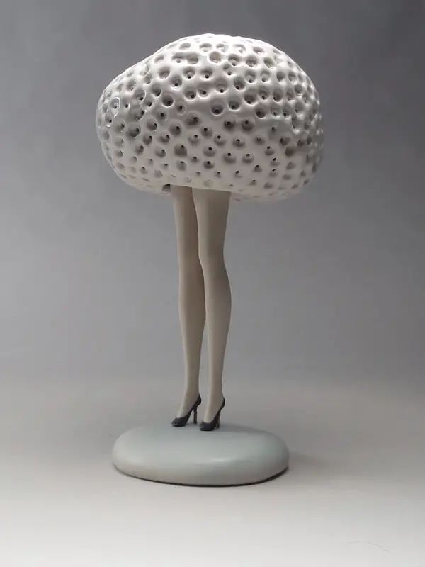 Jessica的作品里往往隐喻了关于女性心理的问题。她妙地将植物与人混合在一起,下半身故意漏出女性的肢体,上半身则用别的东西遮掩,隐喻了每个女性形象都被所在的环境困扰的普遍现象。