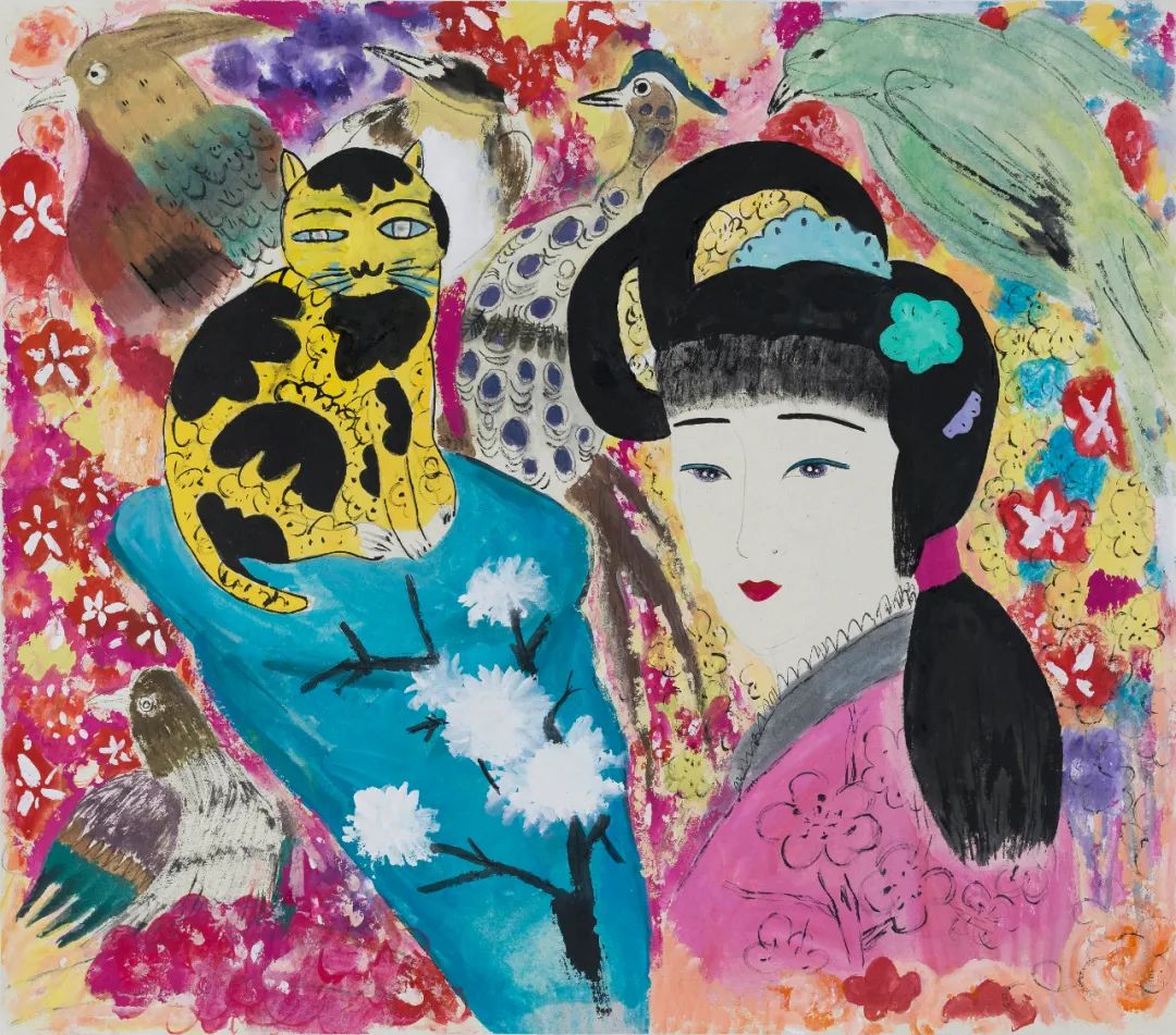 在这位当代少数的女性水墨艺术家的作品里,我们能看到她不一样的一面,她作品里的人物大多数以女性为主导,各式各样的女性角色在繁华璀璨的古代世界过着现代人一般的生活。