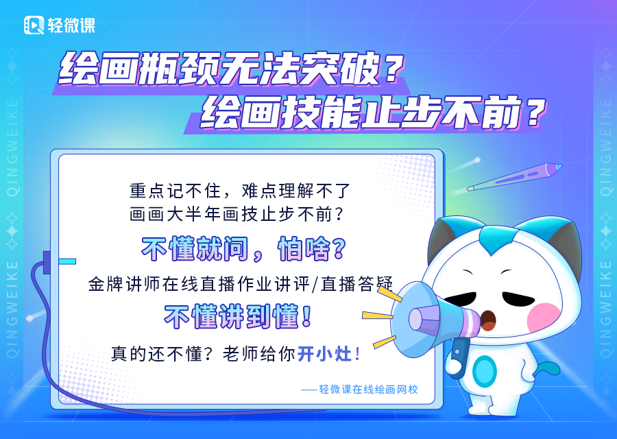 如果大家想要学习绘画的话,可以去轻微课网站看一下,里面有大量的绘画学习资源、教程、素材。下载“轻微课APP”学习更方便!