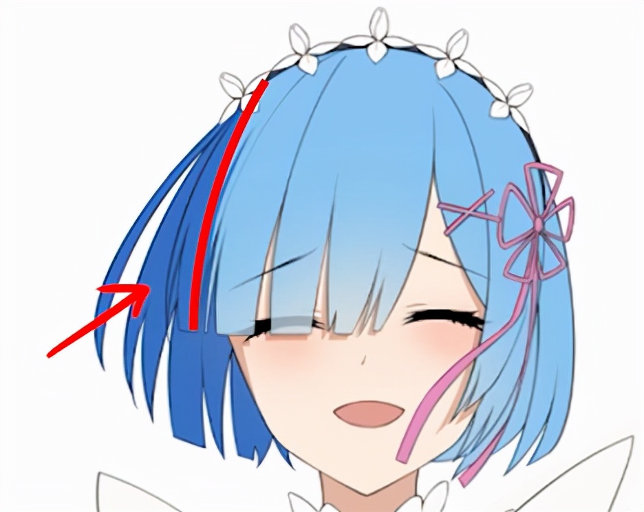 我们按照光源围绕着头部的结构来画,比如头发左侧的暗面,要画成贴合头部结构的弧形,