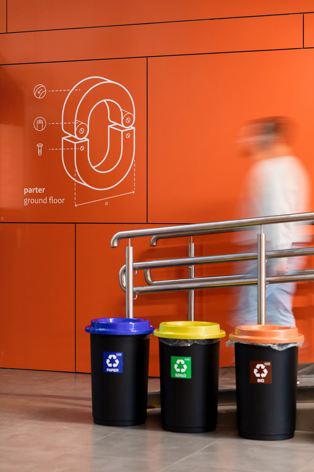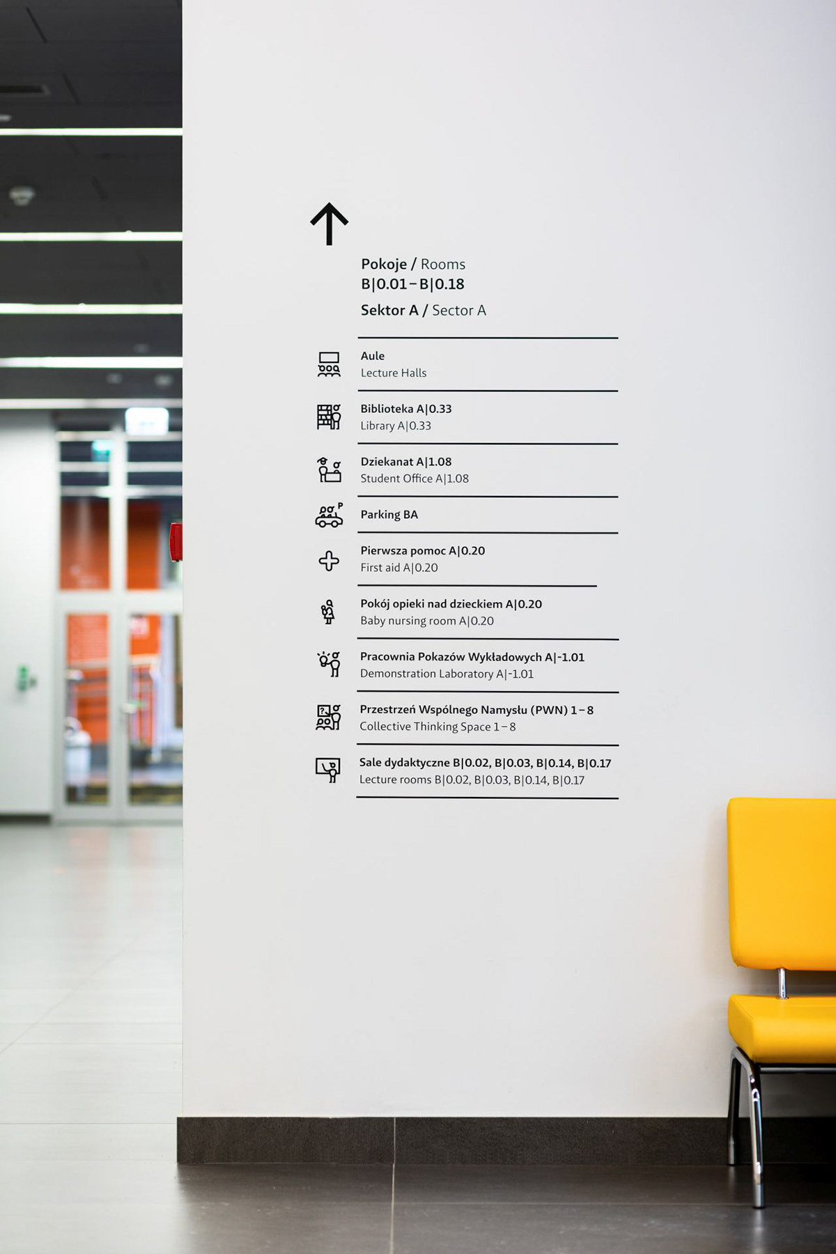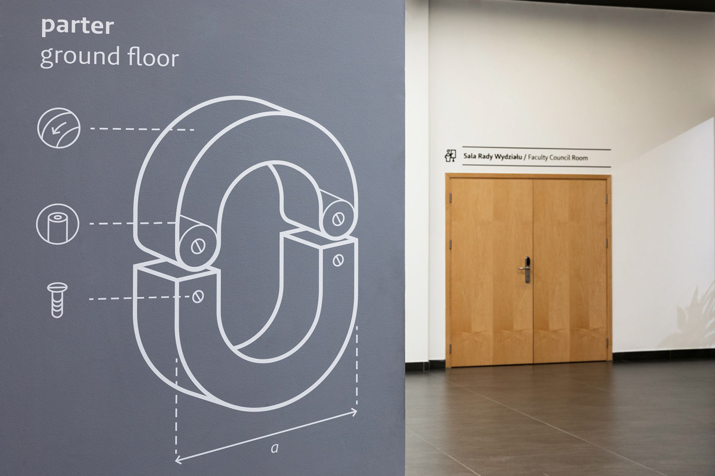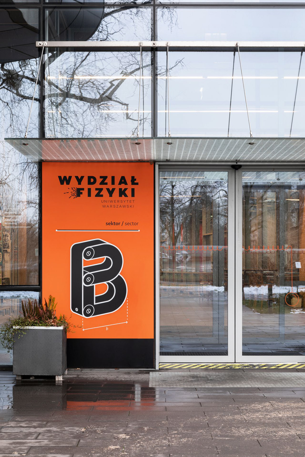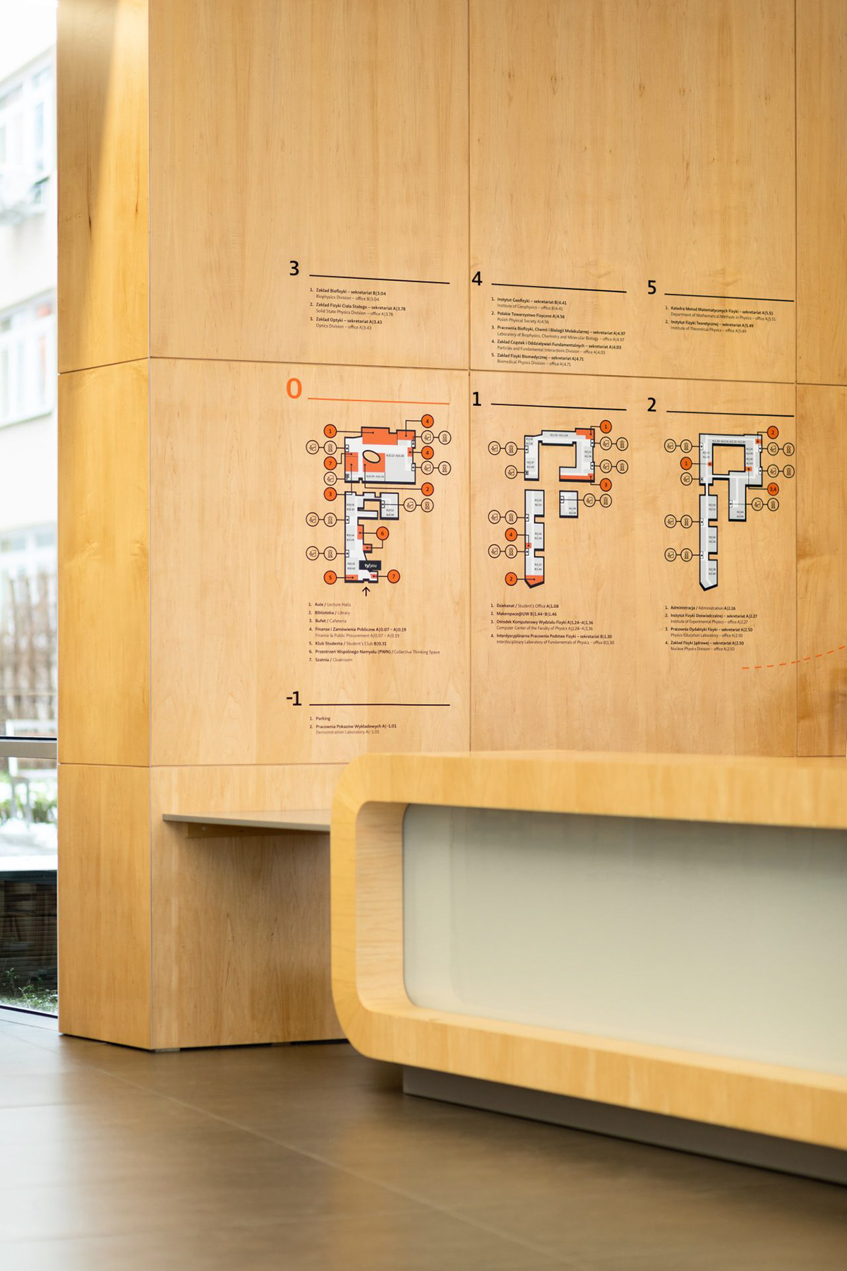 华沙大学物理学院位于波兰华沙奥乔塔区,拥有图书馆、演讲厅、餐厅、办公室和教室等设施,Blank工作室受邀为其进行导视系统设计。
