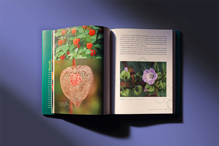 本书是关于花卉的书籍,从色彩上符合一颗植物的色彩样子:装饰页或者是开篇页、内页中的文字应用植物绿,具像图的植物花朵花蕊点缀期间;整个版面用线条小图标贯穿整本书,给人植物灵动之感。植物特写配图鲜活色彩艳丽抢眼。文字排列有序,有视觉层次感,可读耐看。