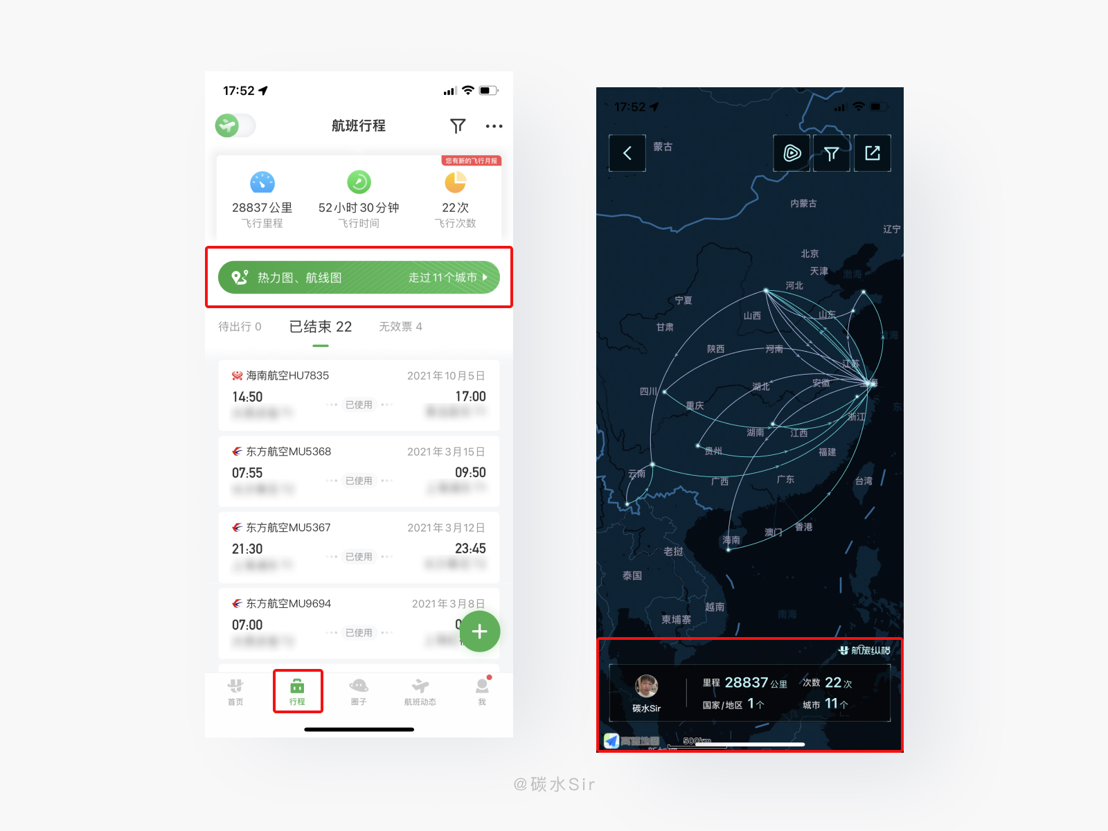 打开App,查看近一年可视化飞行线路历史,在年末阶段发个动态总结一下旅程。