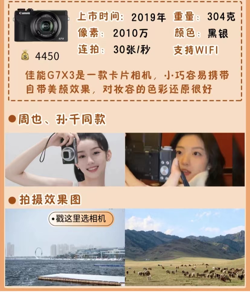 被欧阳娜娜种草了拍vlog,后来一直想有一台自己的相机,攒了一点钱之后就买了周也同款,佳能G7X