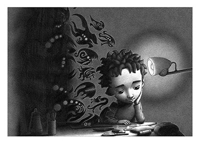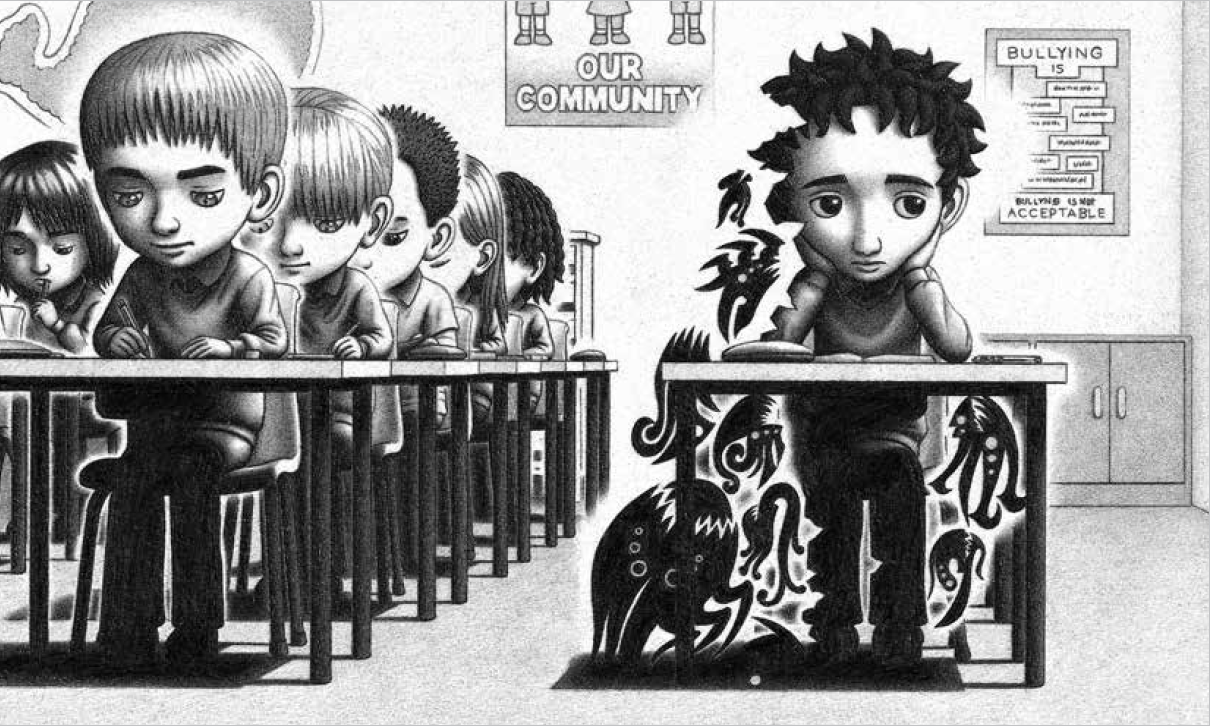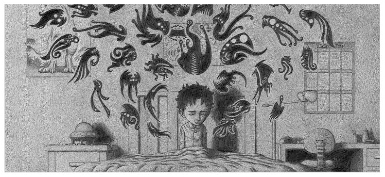 在绘本故事里,那些从阴影中伸出触角的怪物的形成也是因为一件小小的事,不同的小事所造成的负面情绪聚集让阴影中的怪物现形。