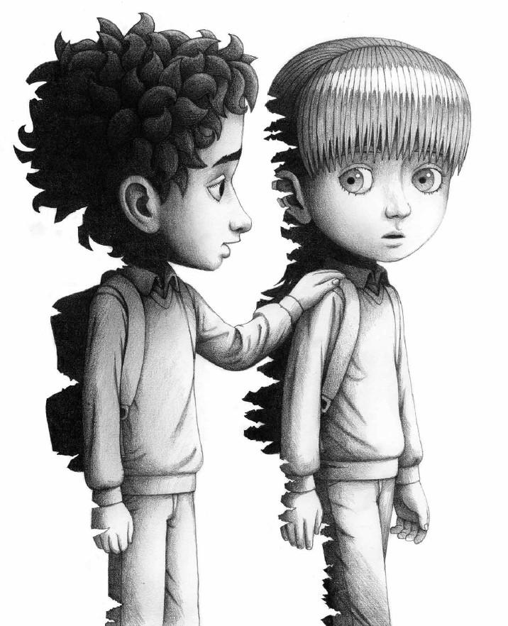 治疗抑郁症的其中一方良药就是陪伴,可能仅仅是什么都不说的坐一会儿都会让他们感觉更好。所以故事的最后,男孩也尝试去把这种爱与交流传递给另一个“被负面情绪侵蚀”的人。