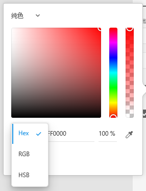 Figma、Sketch、Adobe Xd 默认的拾色器是 HSB 模式,也支持直接输入 HEX 的值设置颜色,而每个软件可选的色彩模式拾色器是有区别的: