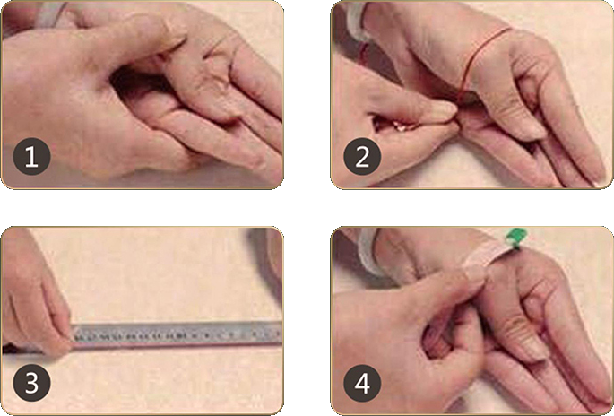 1.把手用力握紧,切记要用力尽量捏紧,可能会有点疼,但为了您戴上合适,就忍耐一下吧;