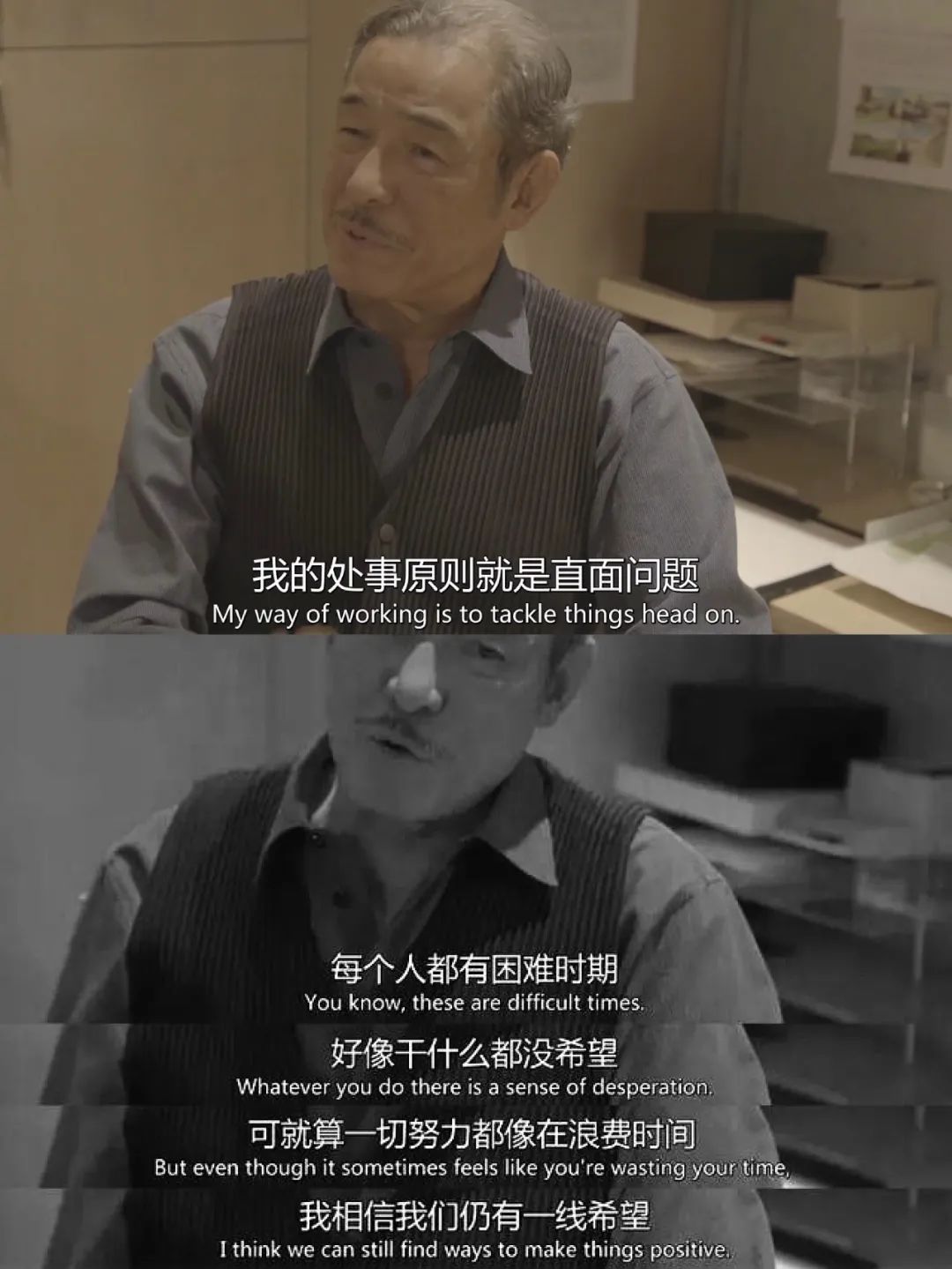 纪录片中,宫崎骏老爷子也娓娓道来他的人生哲学:“你必须培养一些爱好,不要空洞遥远的目标,而是实在甚至庸俗的吃喝做事。必须一觉醒来很清楚至少今天还能干什么。去画一幅画,去泡一杯咖啡,去制作一部动画脚本。你必须积攒这种微小的期待和快乐,这样才不会被遥不可及的梦和无法掌控的爱给拖垮。”