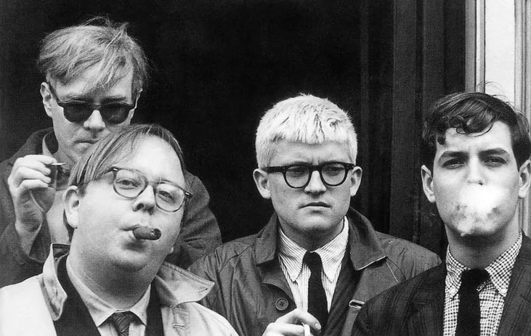 ▲在美国,大卫·霍克尼和安迪·沃霍尔(左上)的合影