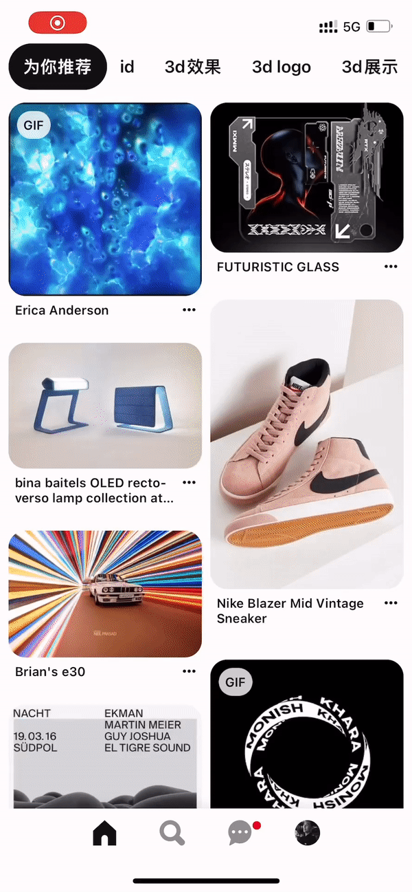 容器变换是谷歌在 Material Design 的 Motion 章节中的一种动画定义。对比滑入滑出,容器变换能更好的引导用户的视线,在过渡的同时完成了用户的视线引导,大大缩减了用户的反应时间,提升体验的流畅感。对比上面的例子,就好像你在玩打地鼠的时候,地鼠的半个头已经冒出了洞口。在我们常用的产品中,诸如 Pinterst、小红书、大众点评的推荐内容都用了这种效果: