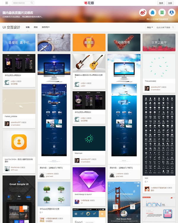 花瓣设计发现、采集你喜欢的设计(App、Banner、Icon、Logo、UI、VI、插画等)