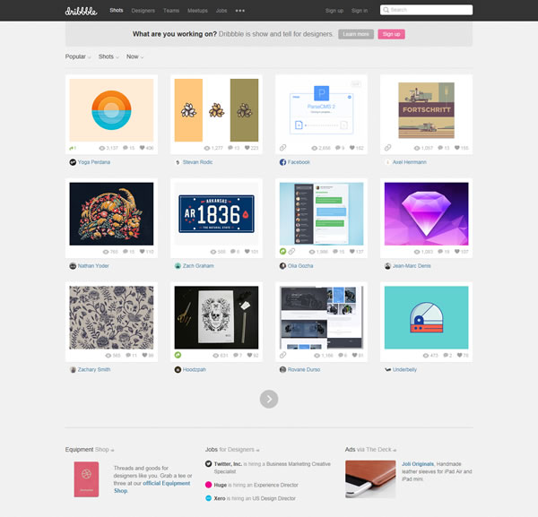 Dribbble高质量的平台成为了最有才华和最有趣的设计者的归属。