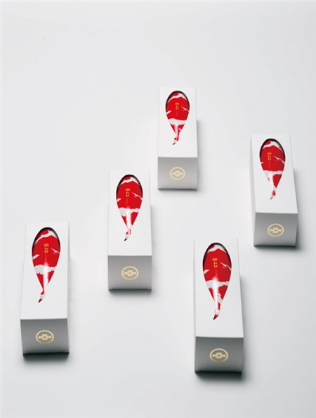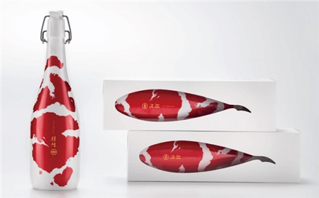 日本新泻今代司酒造出品了气质高雅的日本清酒“锦鲤KOI”。酒瓶上有红色鲤鱼的花纹,搭配的外包装盒上镂空一锦鲤剪影,将酒瓶放入其中,宛如锦鲤在游动一般,非常漂亮。独具创意的设计,荣获世界最大设计奖Design for Asia Awards。