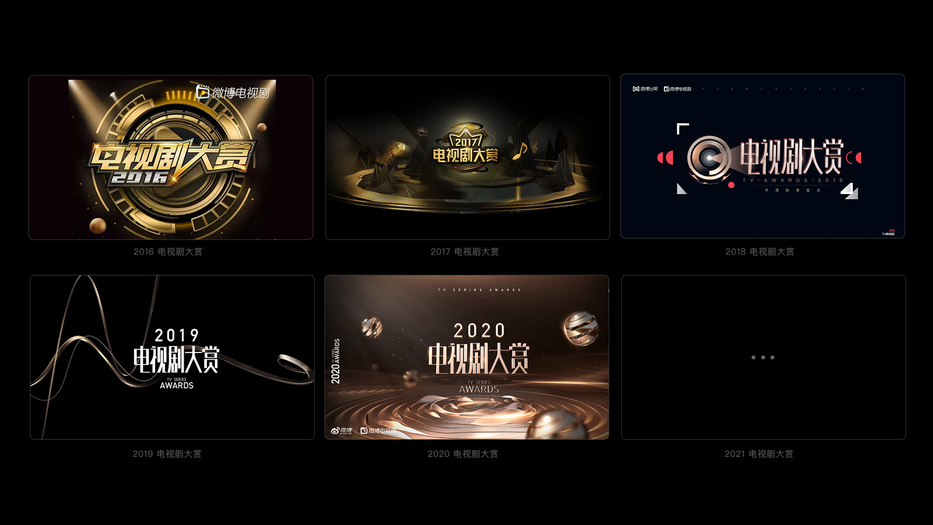 2016年#电视剧大赏#作为微博台网业务线的年度活动正式上线,同时也塑造了活动的品牌基因“黑金”。2018年我们首次使用了标准的文字logo作为品牌的符号,并一直延续至今。
