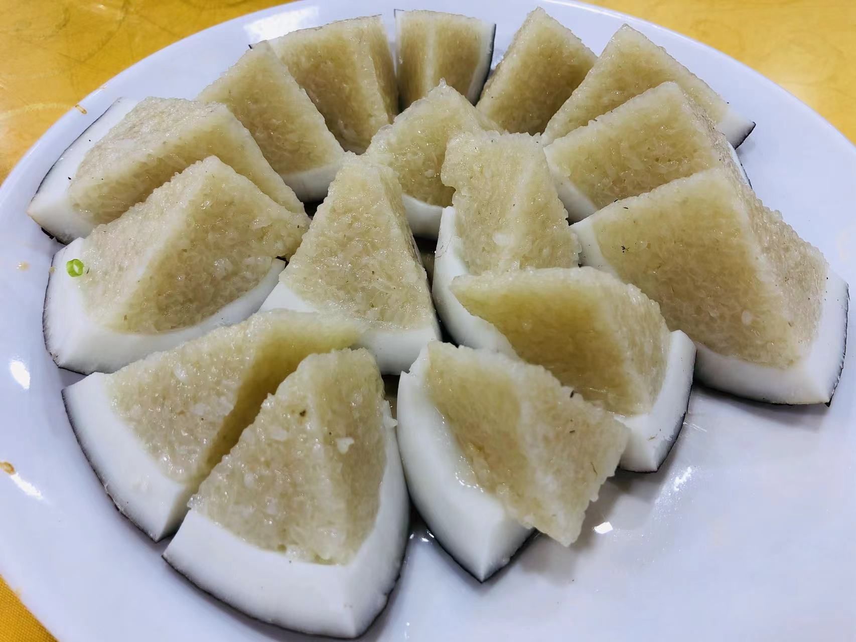 块头不大,一口一个,吃进嘴里先是糯唧唧的,再是甜滋滋、清润润的,咽下去满嘴都充盈着椰奶香,一盘两盘简直不够吃!