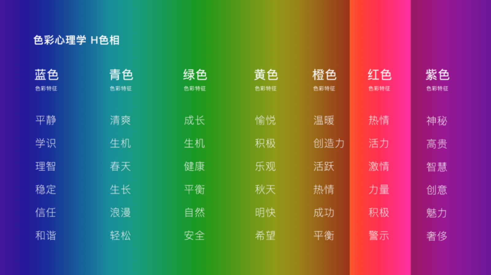第一步定好的品牌调性,我们就可以根据色彩情绪表,选择对应的颜色,每个色相的色彩情感都是不一样的,要根据产品调性去确定一个品牌色色相。