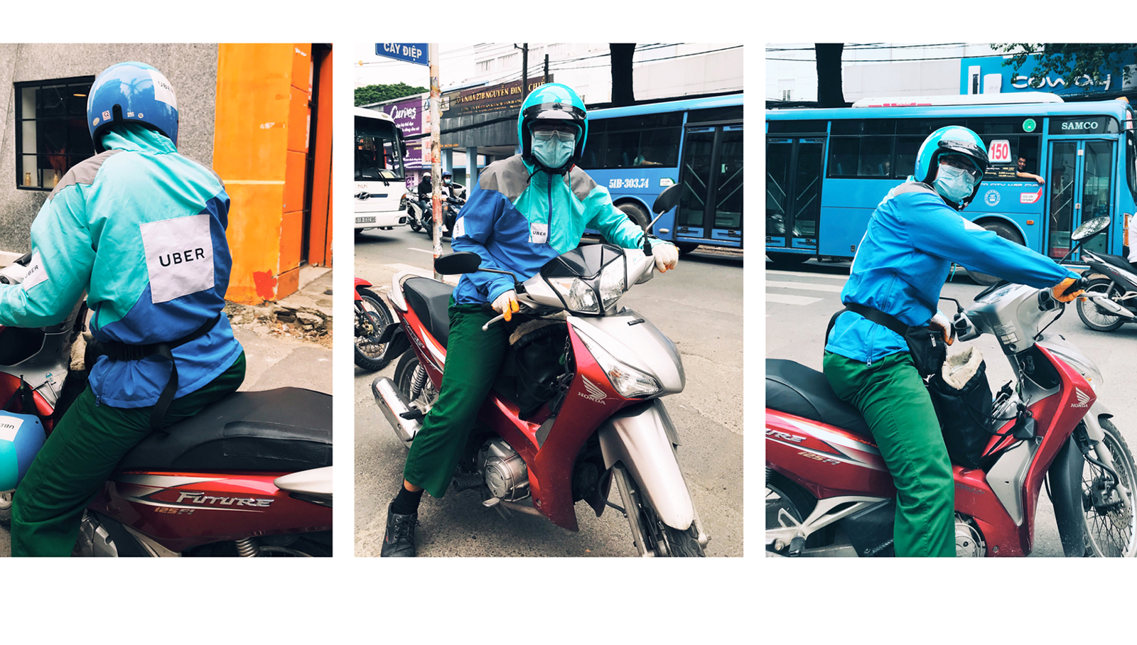 Uber(优步)在越南推出的网路“摩托车”接送服务,在UberMOTO全新品牌形象中,因为在越南天气很炎热,所以采用了蓝色绿色配色,斜45°的色块拼接,延伸出了会反光的安全外套,还有醒目的安全帽,在一大堆的摩托车群中,一眼就能识别到司机的位置。