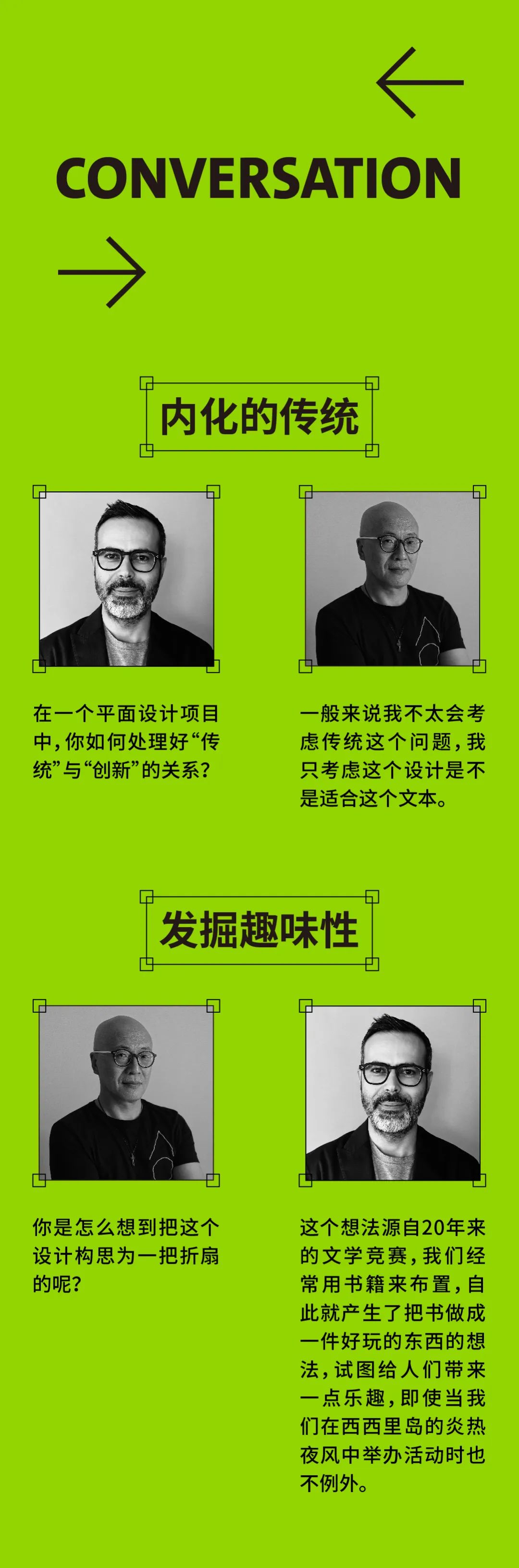 本期开辟全新栏目“设计师对话设计师”,邀请了中国著名书籍设计师刘晓翔作为“特约编辑”,带领读者跟随他作为设计师的观察角度与设计思路,在你来我往的对话中呈现与7位设计师之间对不同载体、形态、创意的版式“私”想,引爆版式设计的创造力。