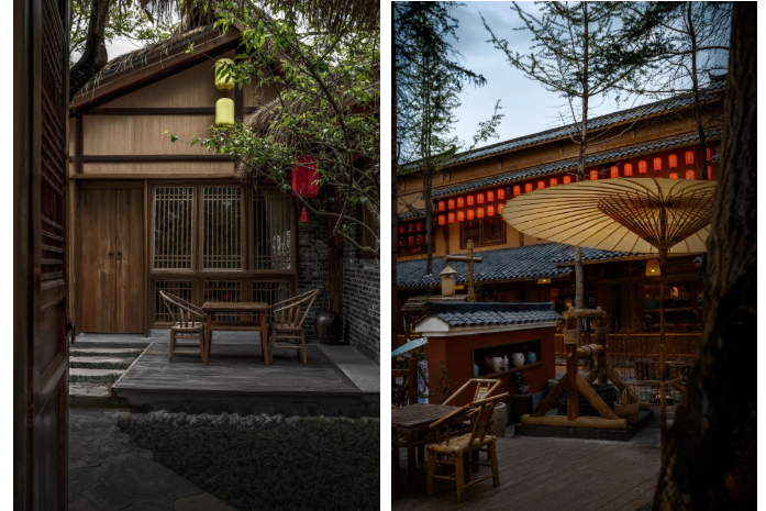 鳖有洞天从里到外,是浑然一体的川西农家院落,瓦檐木柱、斗笠竹篓、鸡犬相闻等等,这些独一无二的传统民居元素设计,还原着川西居民的古拙朴实,散发着淳朴迷人的风情。