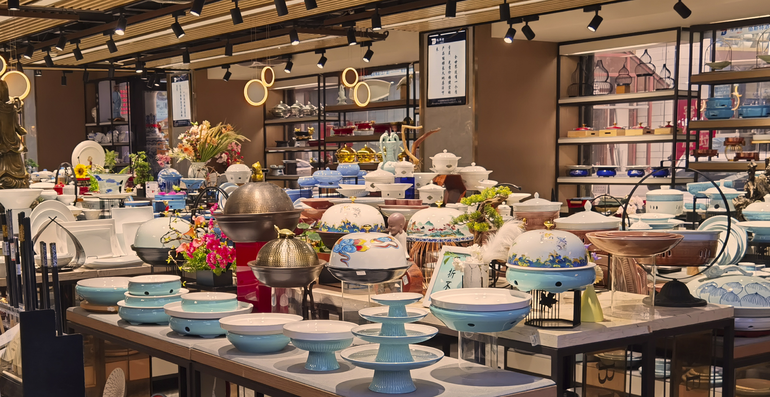 利用自然资源、古旧器物,在地人文,强调文化传承与生态内涵,将《清明上河图》的价值精粹提炼至空间里,再现宋朝餐饮之美学。