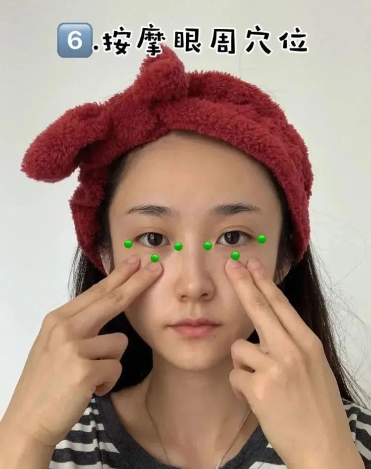 5、用指关节按摩双眼的穴位,要放松眼部肌肉啊~