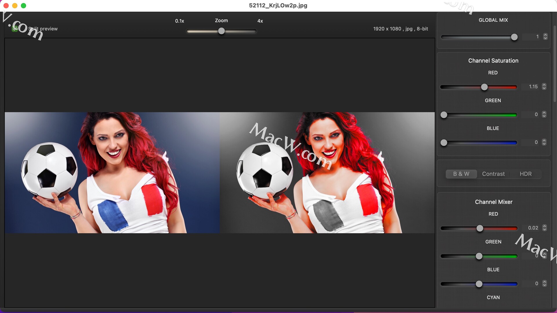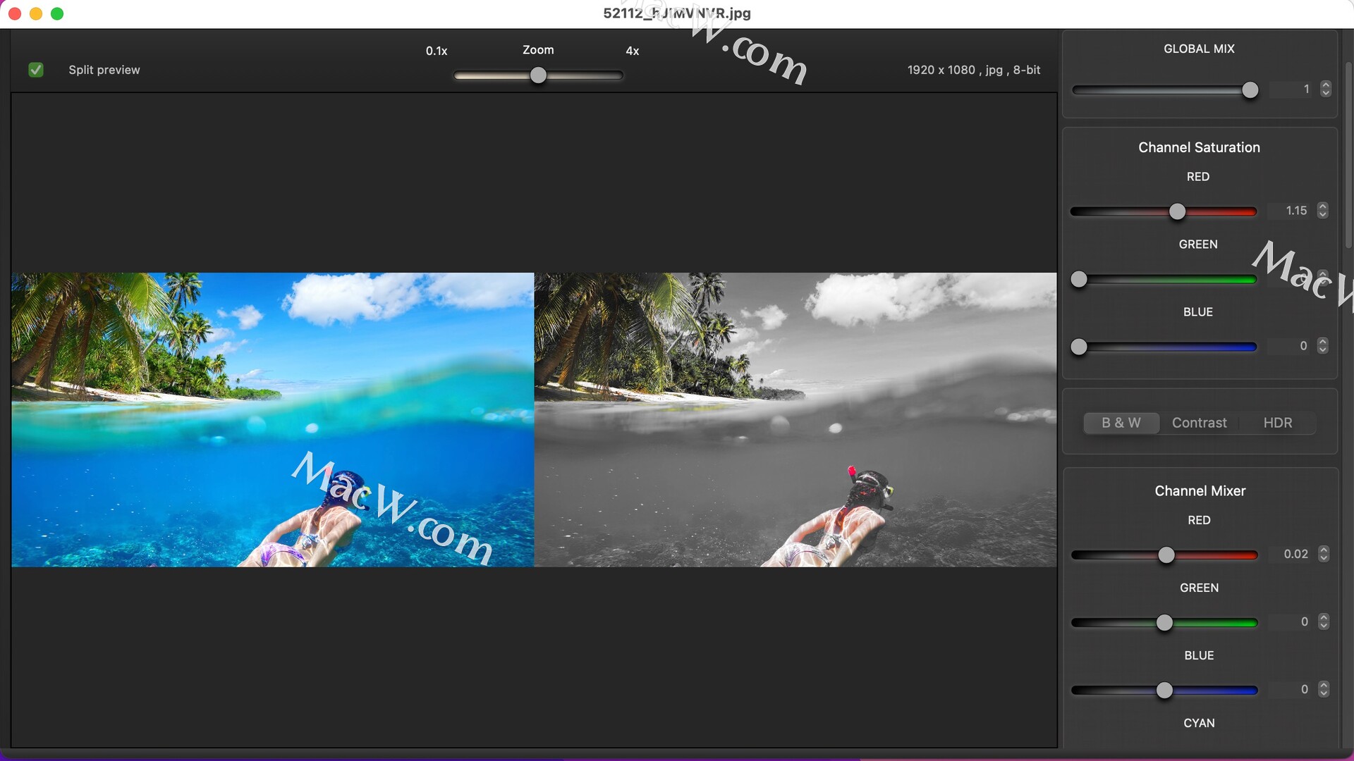 - 支持所有最常见的图像格式,JPG、TIFF、PNG、HEIF、BMP、PDF、ICNS、GIF、PSD...以及 macOS 支持的所有 RAW 格式。