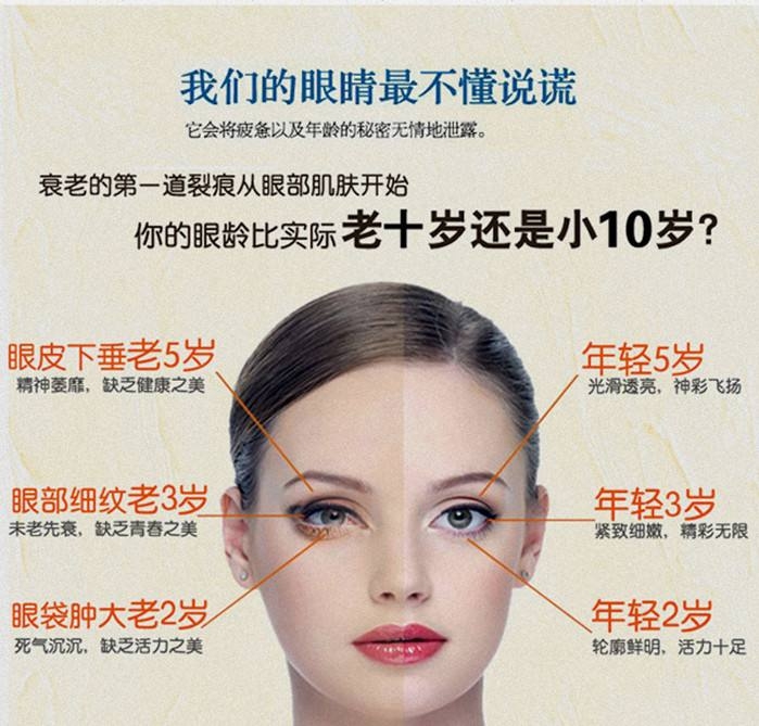 这可是错误的想法,因为眼部肌肤的特殊性,日常的面部护理对眼部效果微乎其微,更要注意的是眼部肌肤的衰老从20岁就开始了,到了25岁已经开始产生细纹,这时候想要保养都晚了。