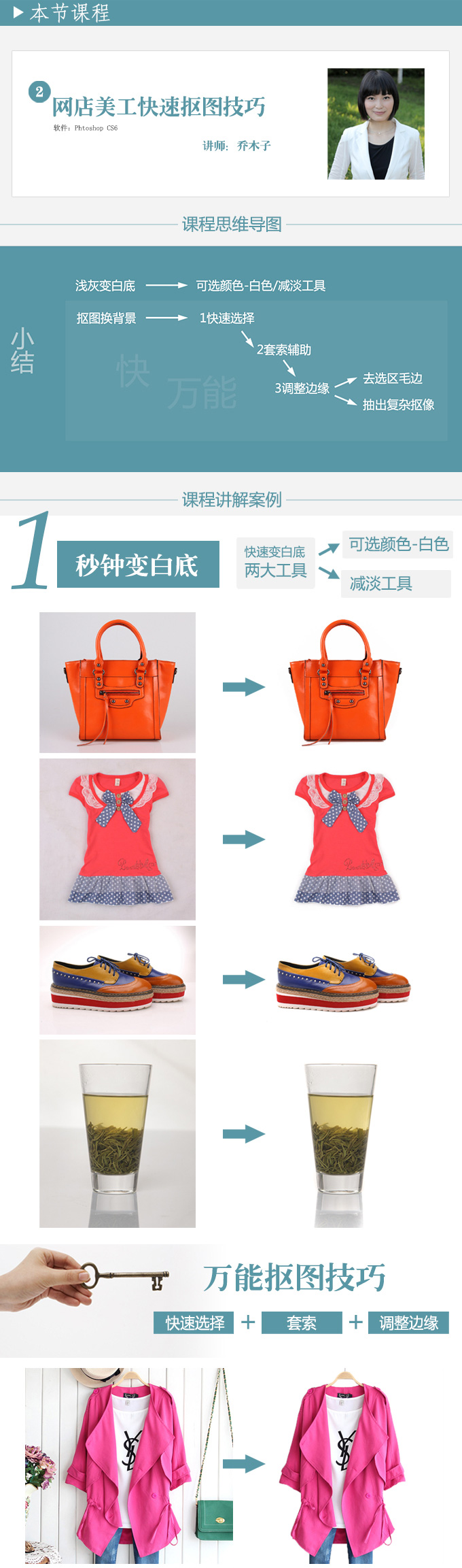 想做淘宝美工的你,学了N种抠图方法,具体操作时还是不会抠,抠太慢,发丝人像、毛领...复杂抠图不会弄。这节课教你美工高手的万能抠图技巧,快速!简捷!万能!无论简单抠图还是复杂抠像,一招搞定!