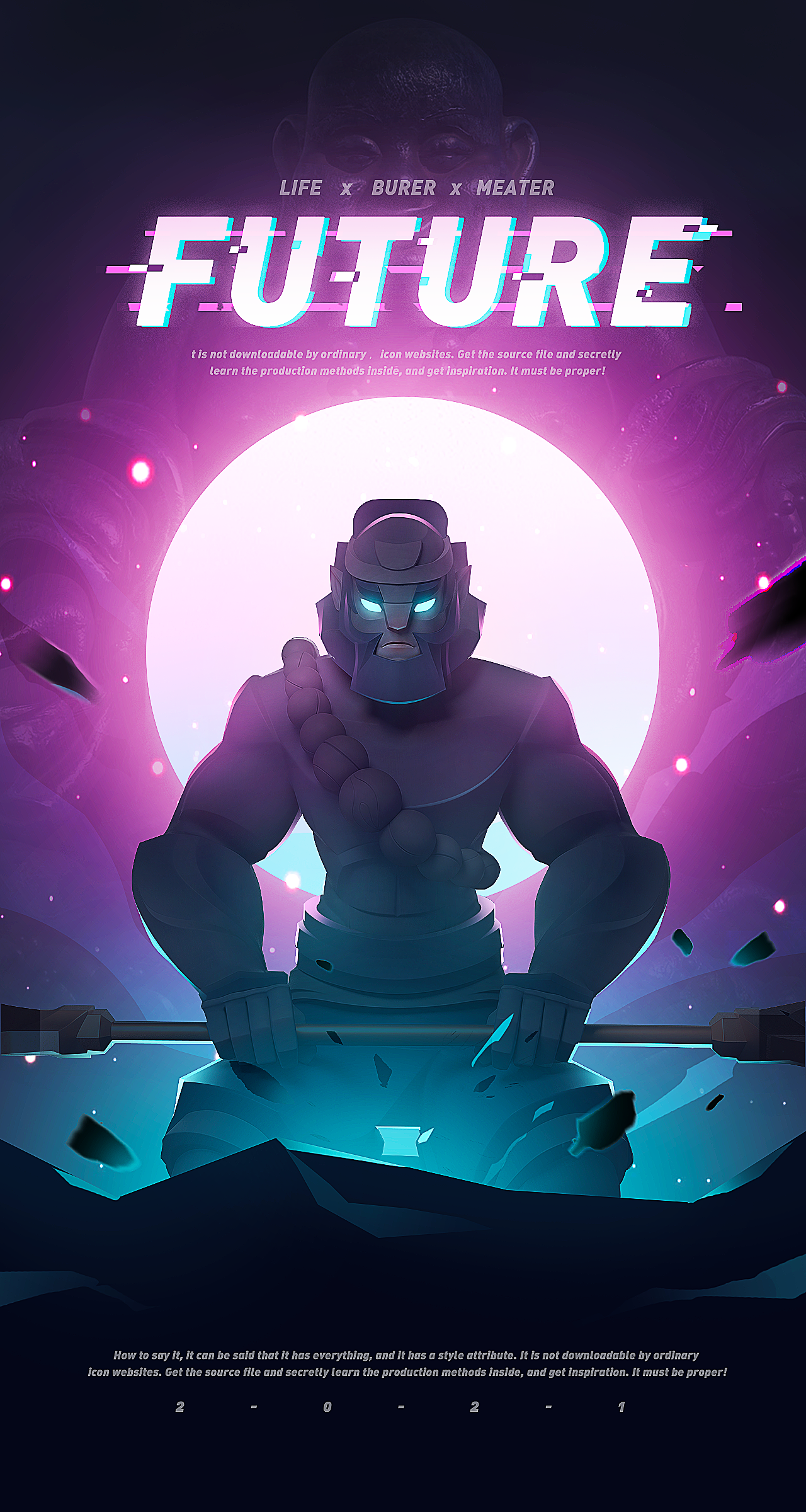 其二,可以加一点字体特效,加点光啊之类的,因为这个配色优点赛博朋克的感觉,所以就加了一些故障特效。