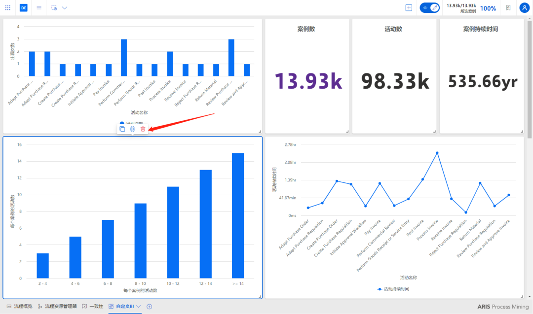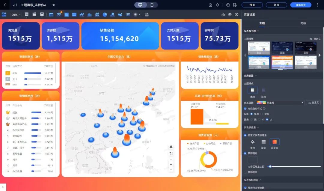 系统中常见的数据统计图表,一般企业的管理人员及高层会比较关心数据的总览,所以很多B端系统中都会做一个仪表盘模块,对于使用者来说更关心的是数据而不是绚丽的配图,用户更想一眼看到所关心的数据。而我见过很多仪表盘的设计界面采用了大量的底部背景装饰,让整个仪表盘看起来丰富多彩却找不到重点,这种非必要的设计只会影响用户使用体验,看的眼花缭乱却看不到自己想要的结果。
