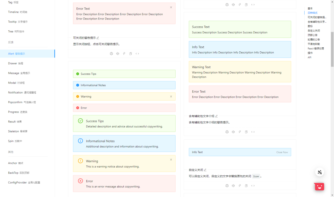 另外列举一个配色上的一致性原则,当系统提示成功、警告、错误信息时,设计在选择配色时,需要选择符合用户熟知的配色,成功使用绿色、警告使用橙色/黄色,错误使用红色。(可看antdesign的组件规范)