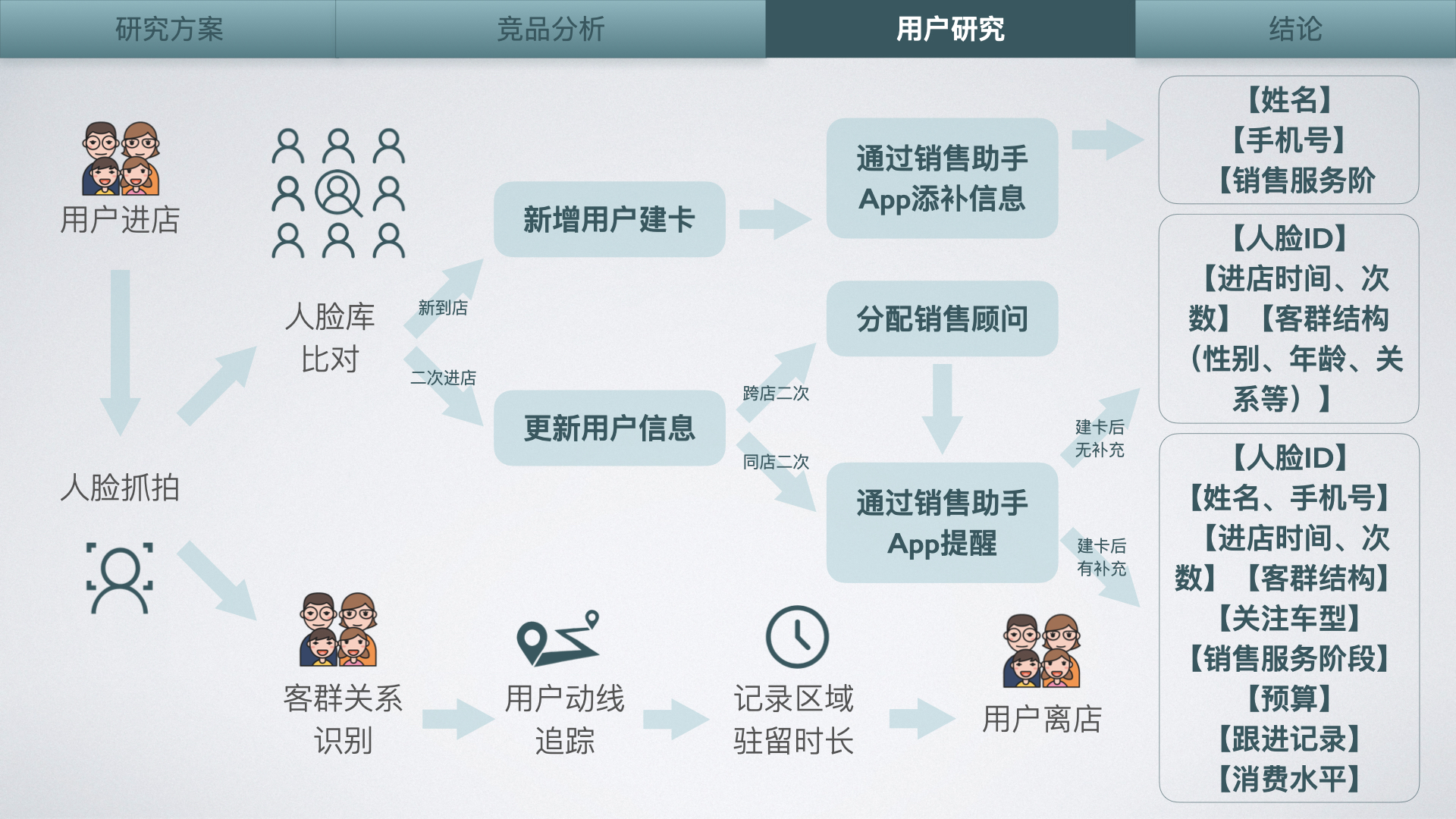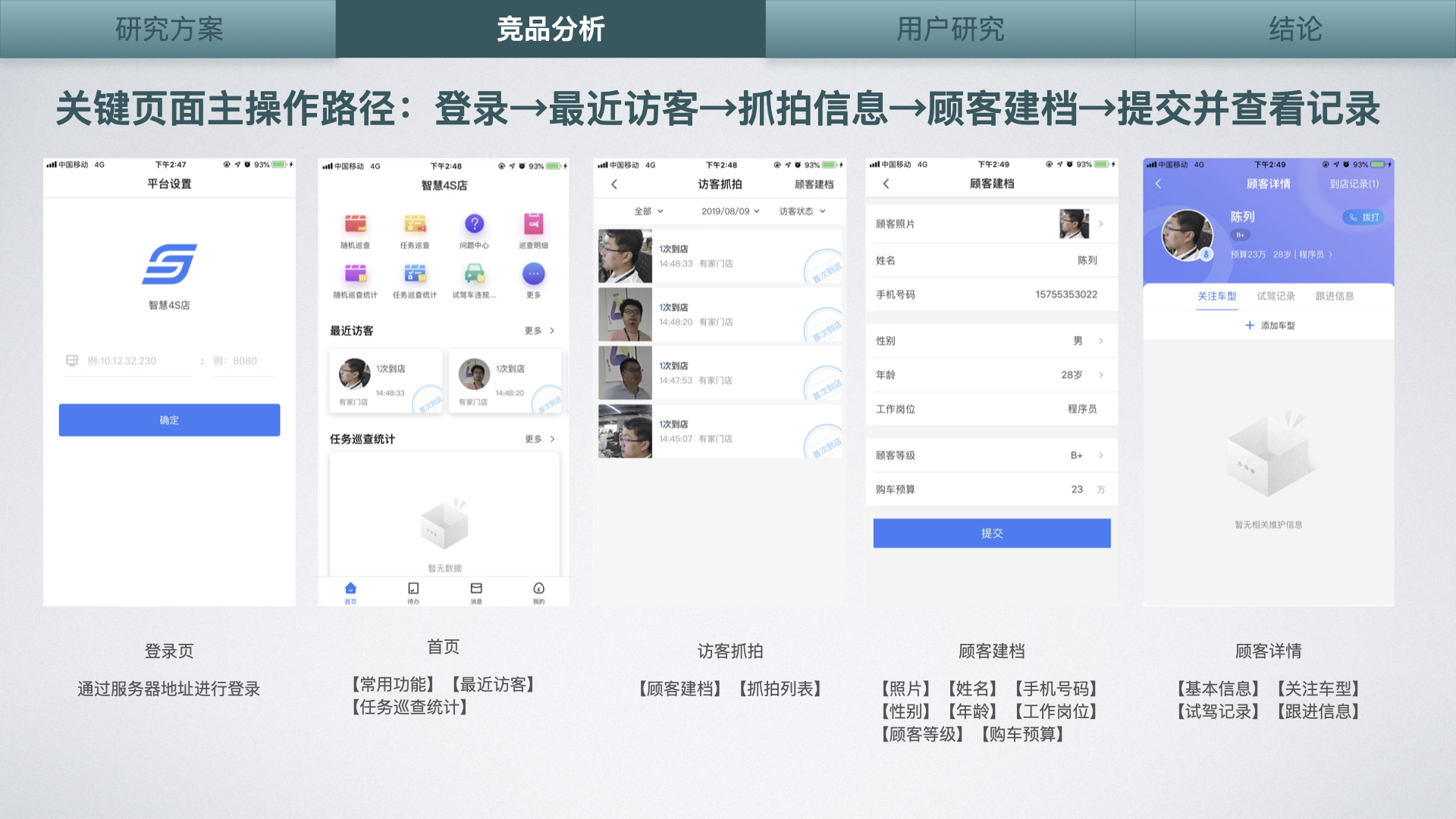 用户调研的全部流程分为预备期、竞品分析、用户流程研究最终得出结论。以下是在工作中为4S店访客系统项目做的真实用户研究案例。