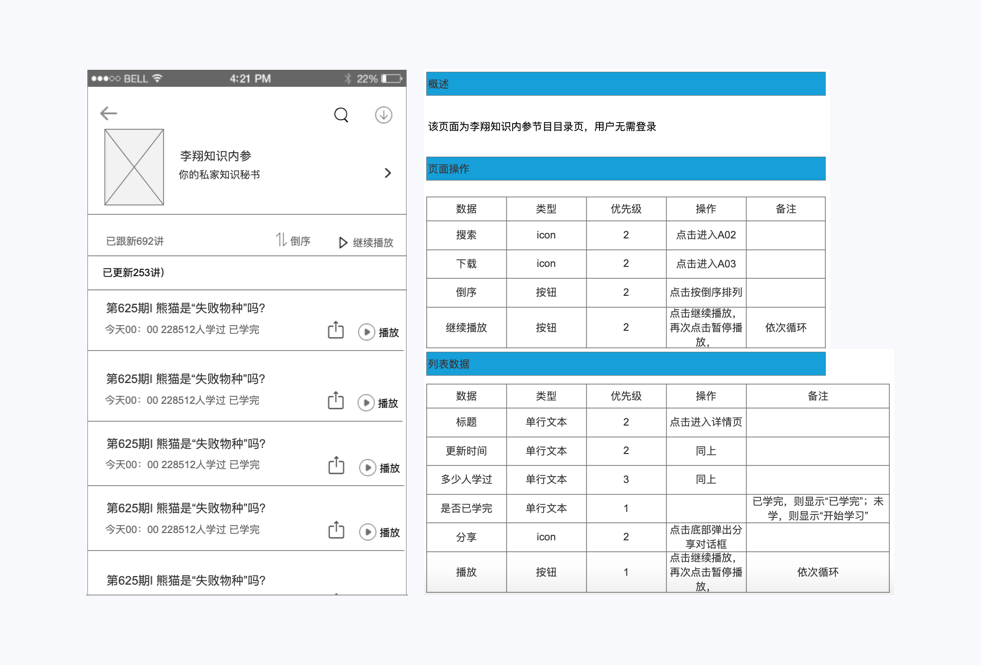 简单的说就是帮助产品的整个流程做详细的介绍和细节内容展示,工作主要集合了全局设计说明、业务流程图、页面流程、交互补充说明等;