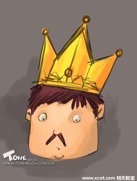 2: 在轮廓的下面新建一个图层,用较大的画笔大胆概括的将国王脸部的明暗表现出来!用笔一定要大胆,笔触应该果断自然,不要担心颜色画到轮廓的外面,也不要太多的去注意画面的细节。