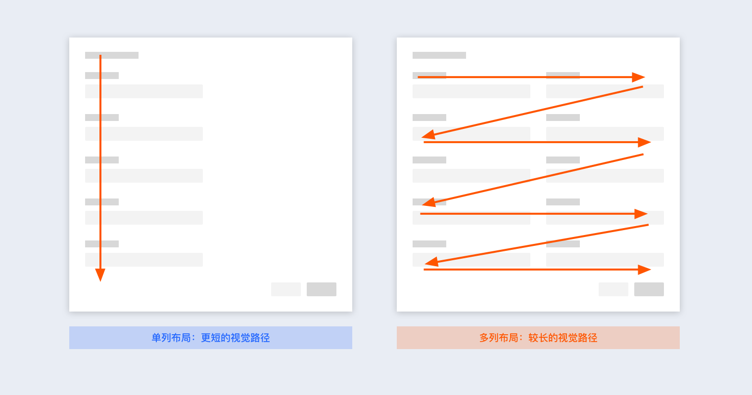 多列布局的格式,对相似的选项进行阅读。视觉路径更长,阅读效率相对更低。