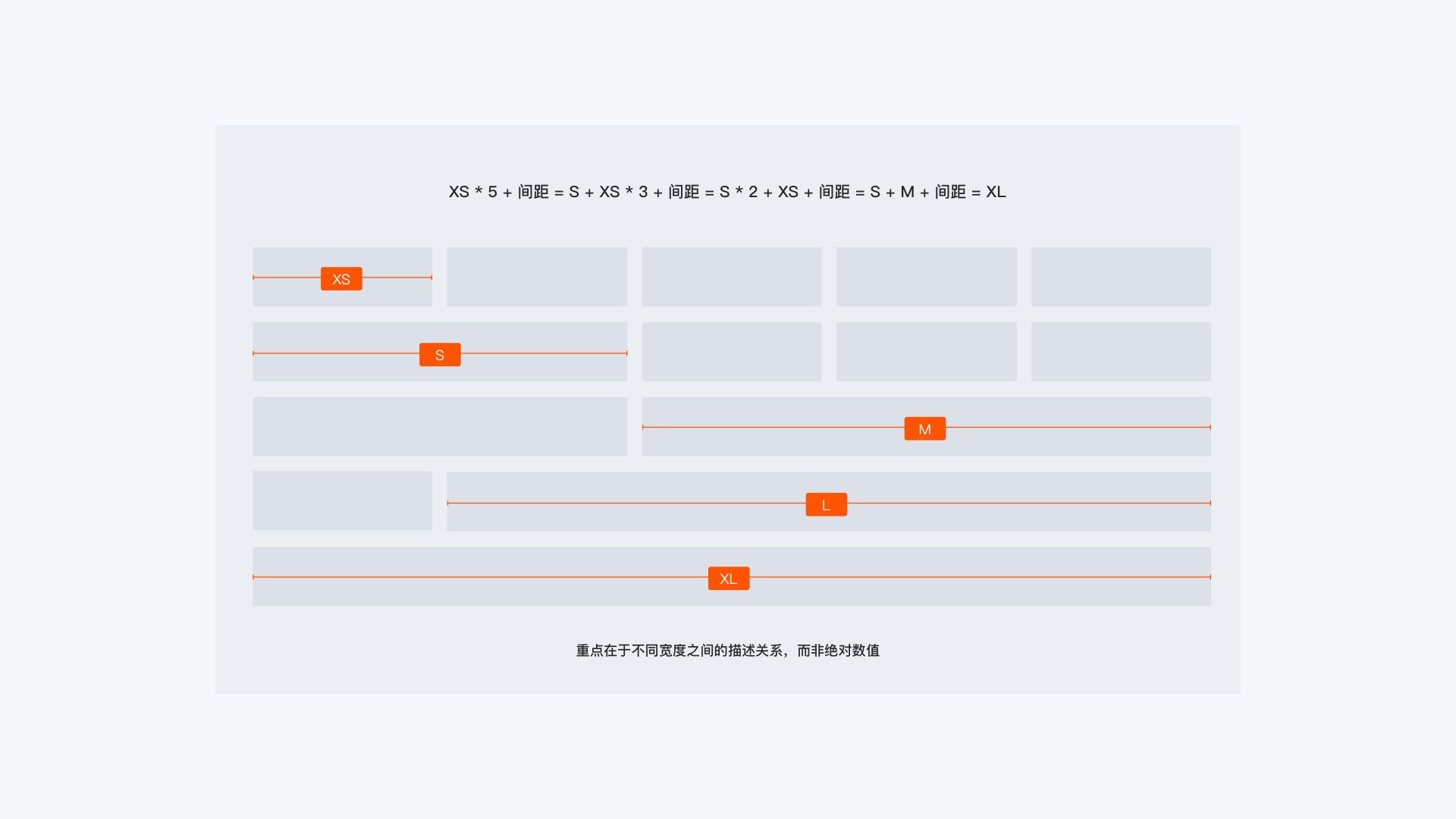 我们不妨站在巨人的肩膀上看问题,根据 Ant Design 的研究,得出5种高频的表单宽度区间。宽度值是 XS - 80~160px、S - 160~280、M - 280~360px、L - 360px~480px、XL - 480~560px。为了呈现出错落有致的排列效果,倡导组合 Input 和单个 Input 的对齐概率最大化,这样Input的宽度差值可以呈现出一个固定规律,且总结出一种不同宽度尺码的排列公式。