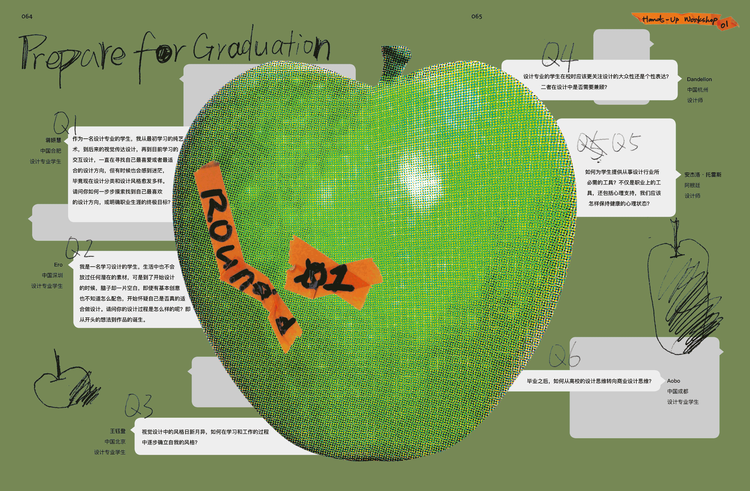 每一个提问背后,是一个个鲜活的个体和截然不同的生活经历,提问间有犹豫迷茫,也有困惑求知,但其中都倾注了对设计的热爱。在雪花般的问卷中,我们选择了其中具有代表性的18个问题,邀请62期专访的15个设计师或工作室进行回答。他们来自全球不同的10个国家,都在设计领域各有所长,风格独树一帜。为了使回答更加客观多样,每个问题我们都邀请了两位设计师进行回答,相信一定会对提问者有所启发。