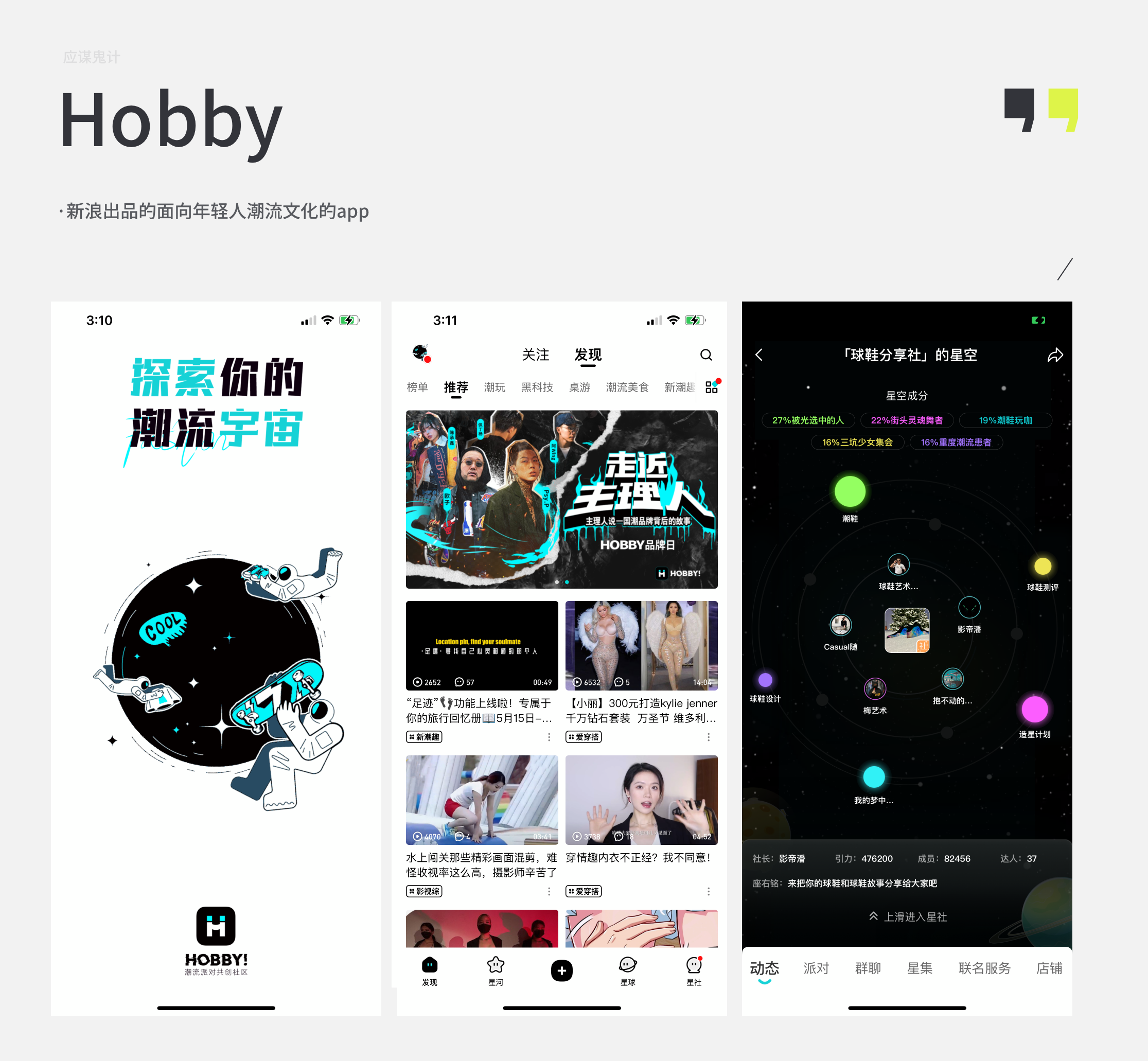 这是一款由新浪出品的面向年轻人潮流文化的app。内容呈现有点像B站,但是风格则更像是得物。这款应用让我印象比较深的是它把个人兴趣与内容创建的社交属性做了一些挺有意思的设计。