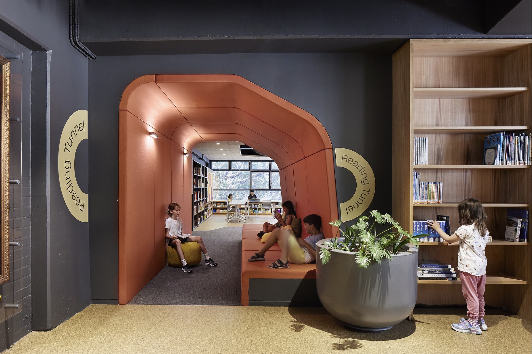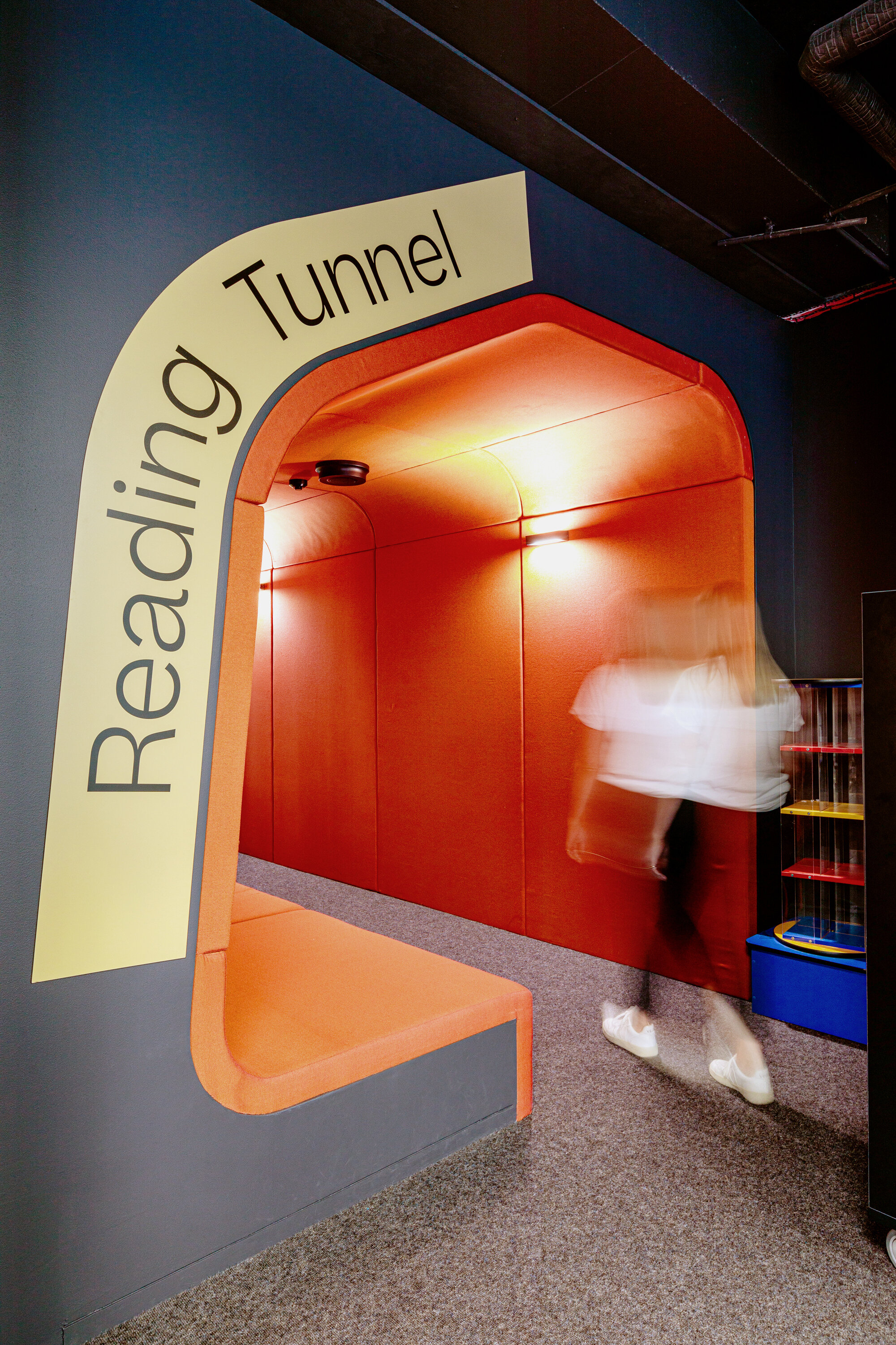 国际文法学校图书馆占据学校中心的两层楼,适合从学前班到 12 年级的学习者,设有写作室、阅览室、学习中心、圆形剧场和餐厅。Citizen设计公司受邀为其进行导视系统设计。