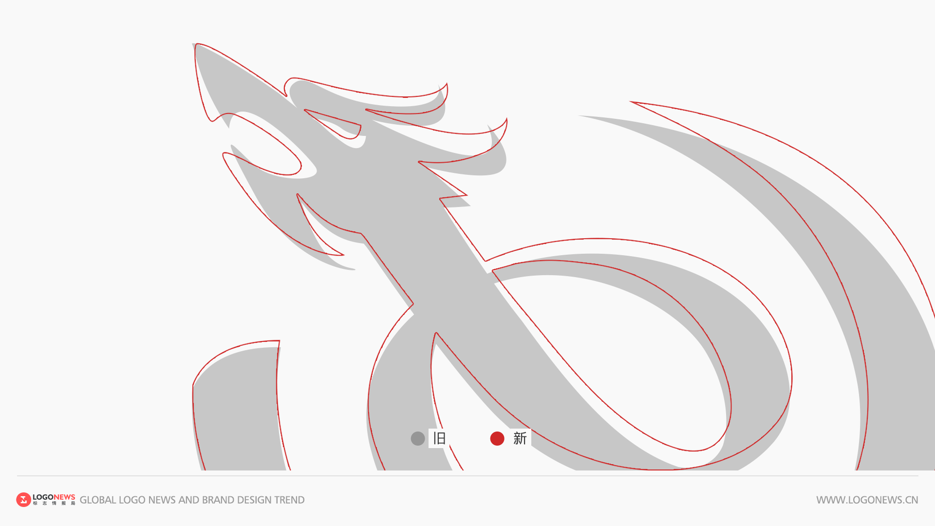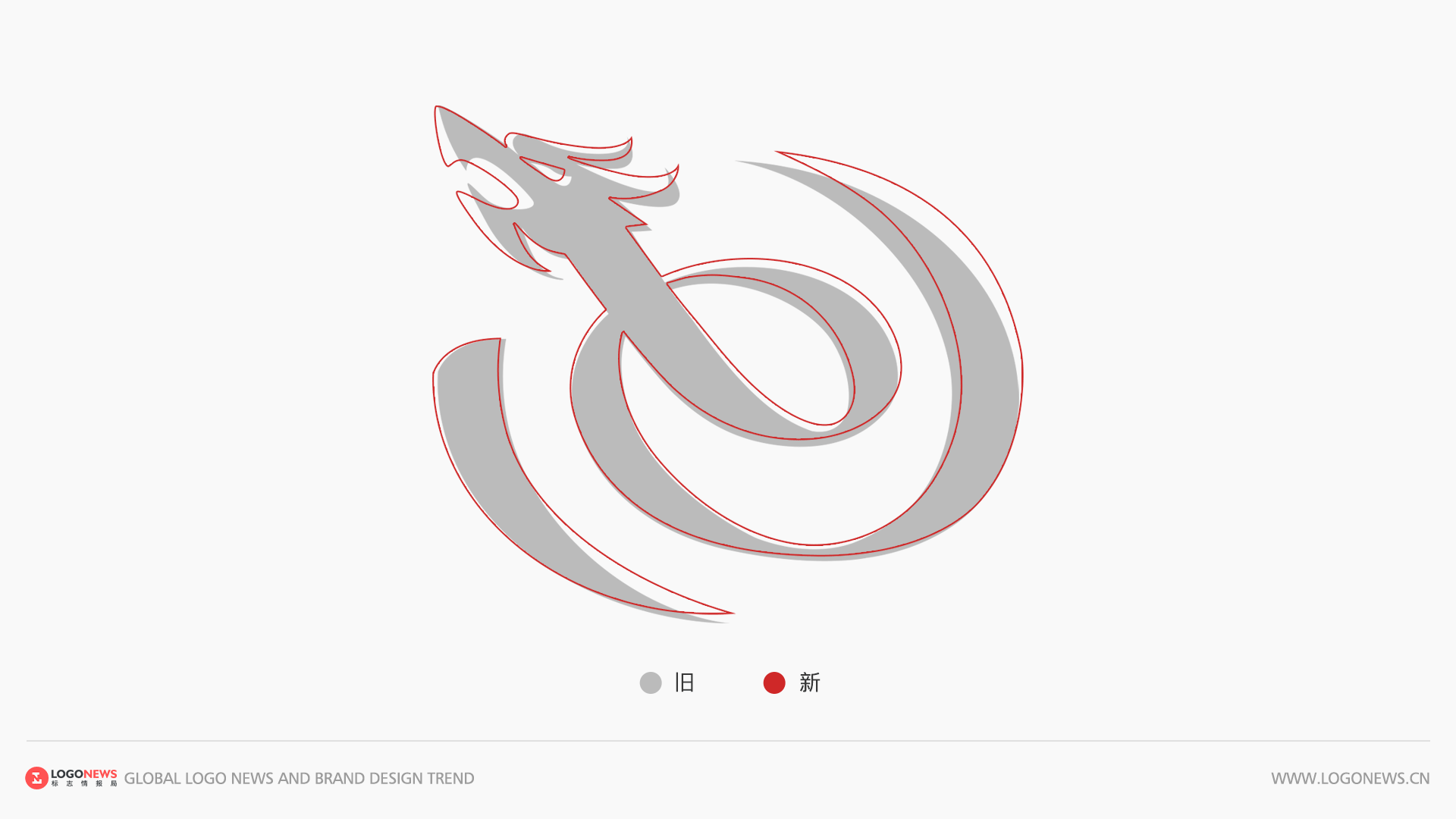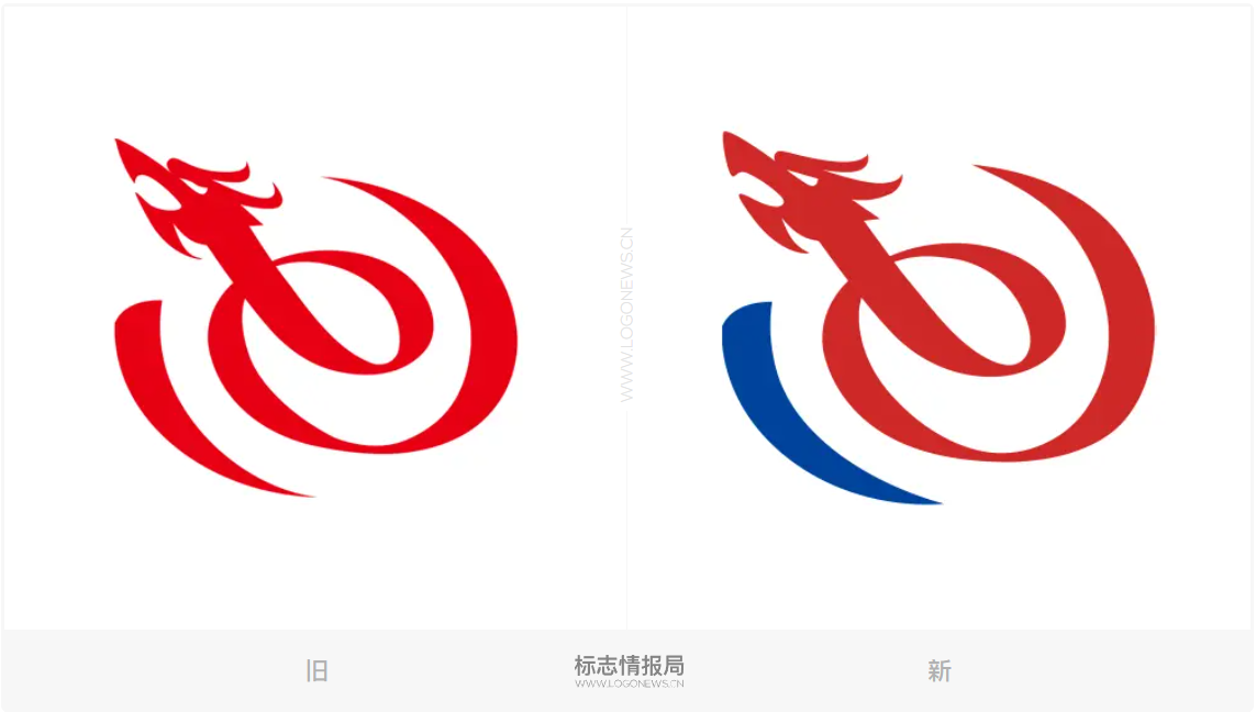 通过下面这张新旧图形对比图,可以明显看到图形轮廓的变化细节,注意观察龙头的线条处理。原先相对琐碎的线条经过简化后,龙头的轮廓更加明显,龙的形象也显得更为自信活力。