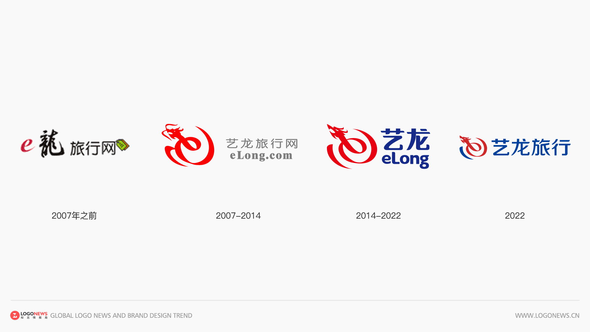 2007年3月,艺龙升级了LOGO,原LOGO中的红色「e」具化成一条中国龙的形象,飘逸的线条勾勒出腾龙的优美姿态。