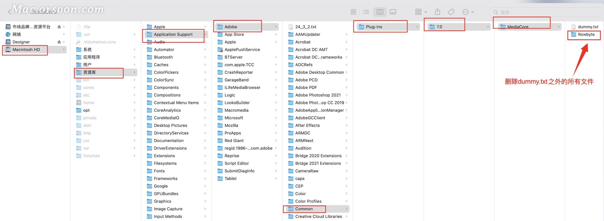 4、在资源库里找到下面的文件夹,然后删除dummy.txt之外的所有文件,重启电脑