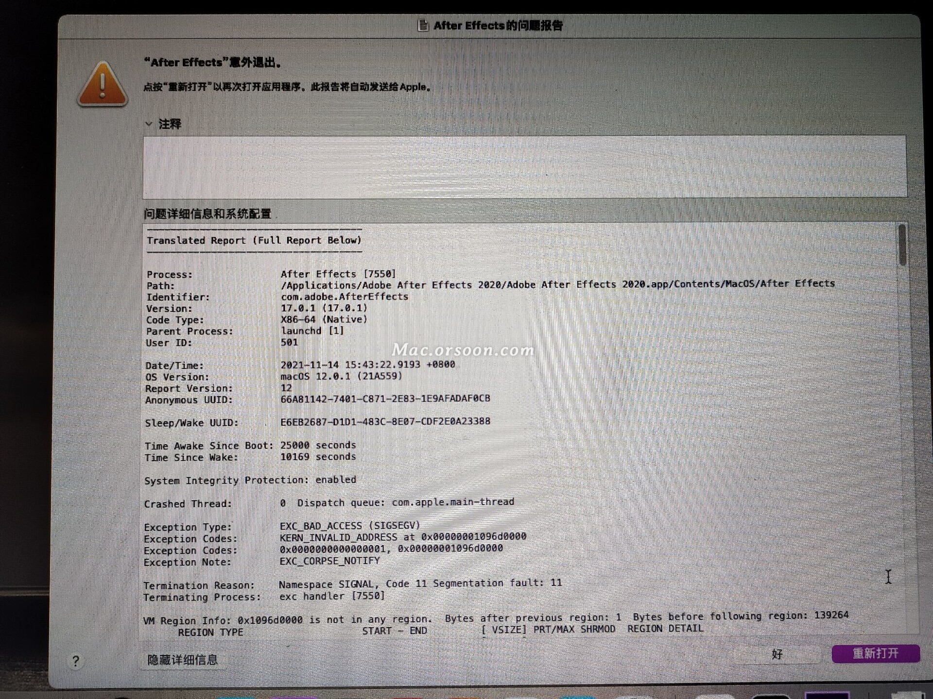有很多使用After Effects Mac版的用户,有会出现ae意外退出,显示重新打开的案例。